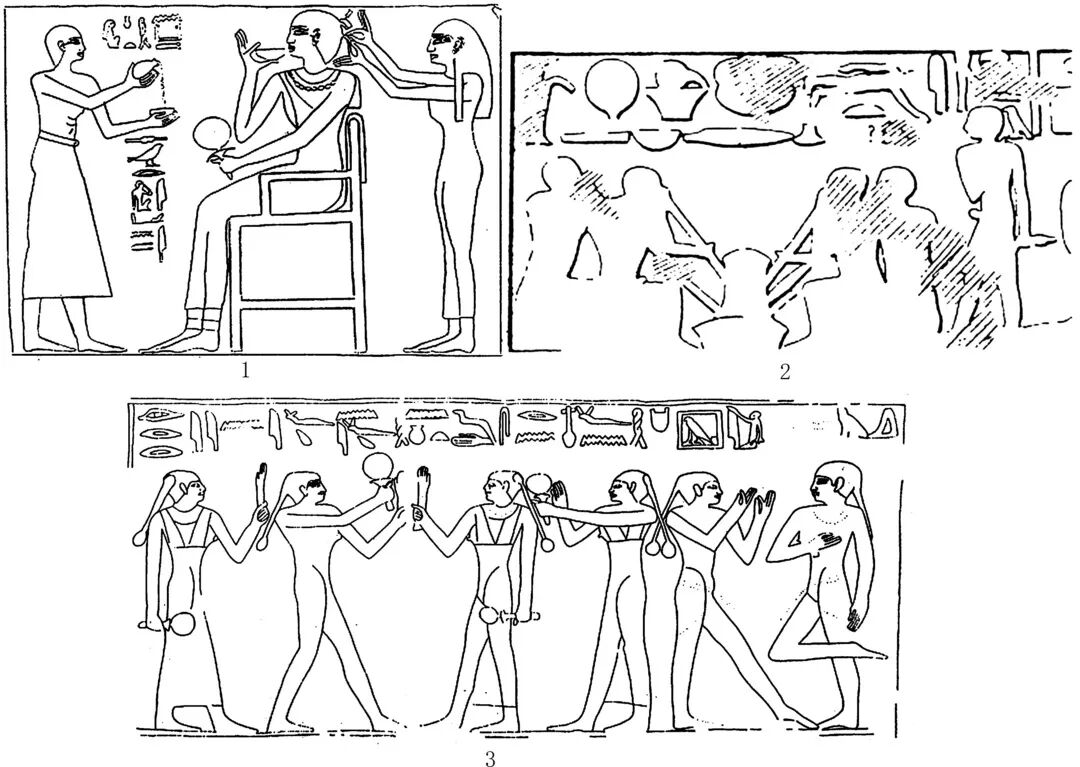 图八 古埃及墓葬壁画中的有柄镜形象[93]