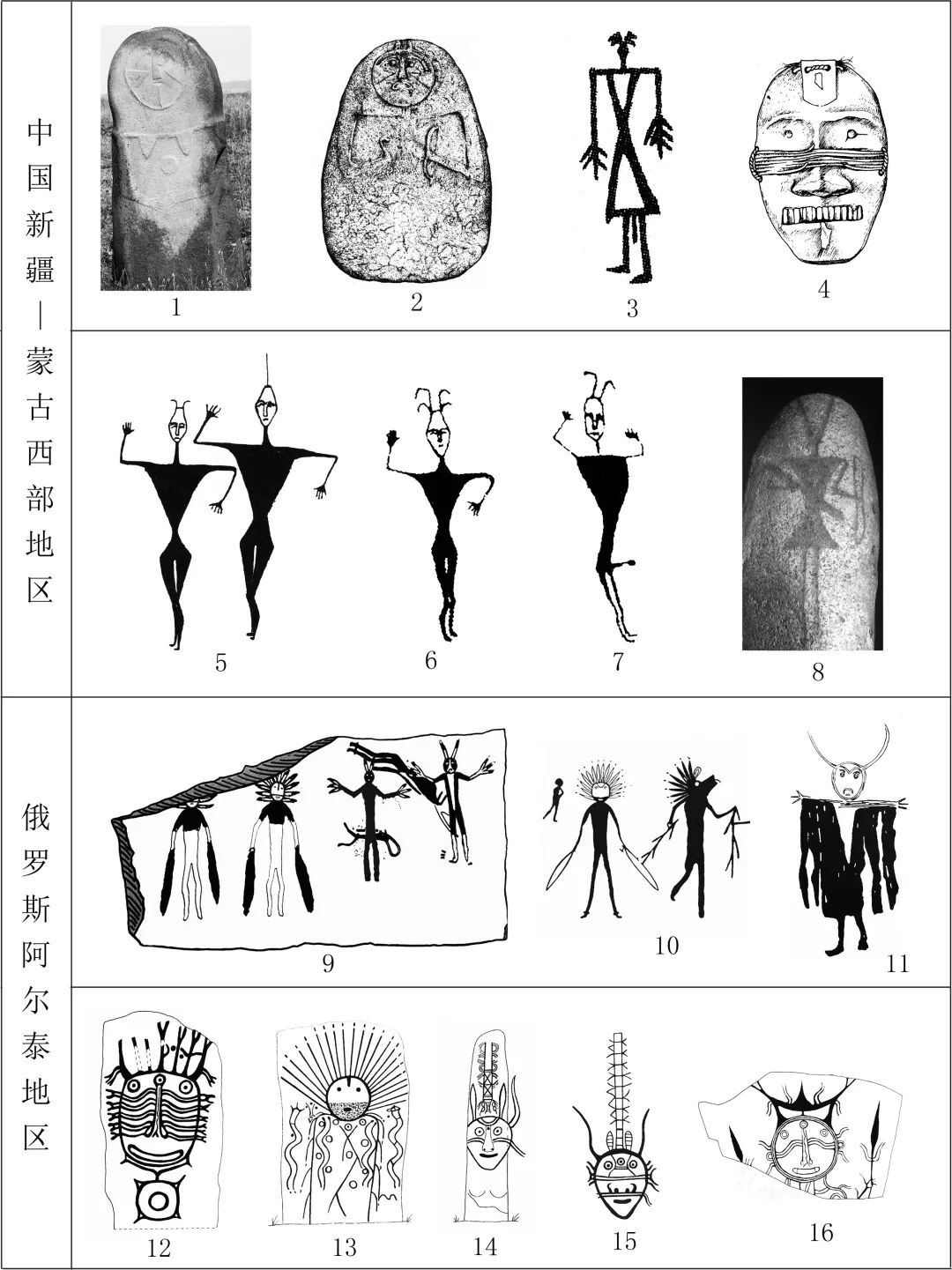 图四 中国新疆、蒙古西部和阿尔泰地区的萨满式人物形象比较