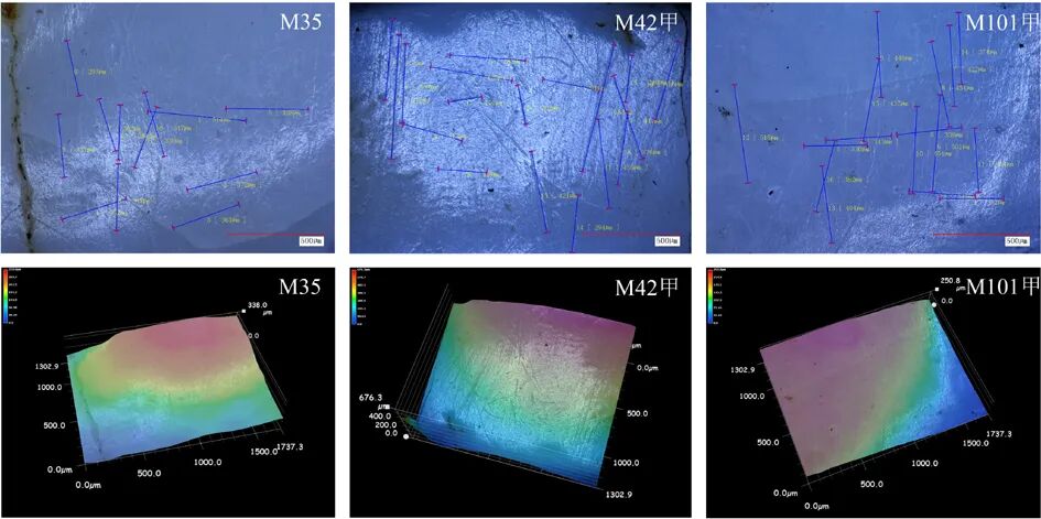 图二 三维显微显示下部分牙齿颊侧面微磨耗观测图