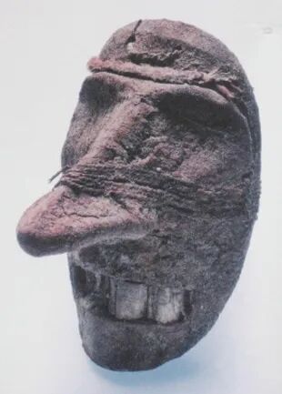 图2 高鼻人面木雕像(转自新疆文物考古研究所小河墓地发掘简报)