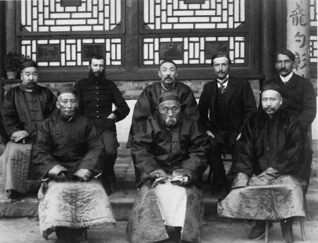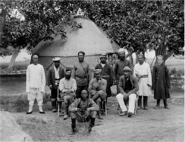 伯希和(后排右二)与中国的流放官员在乌鲁木齐