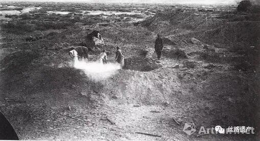 1906年伯希和及其考察队员在图木舒克寺院遗址考古发掘现场