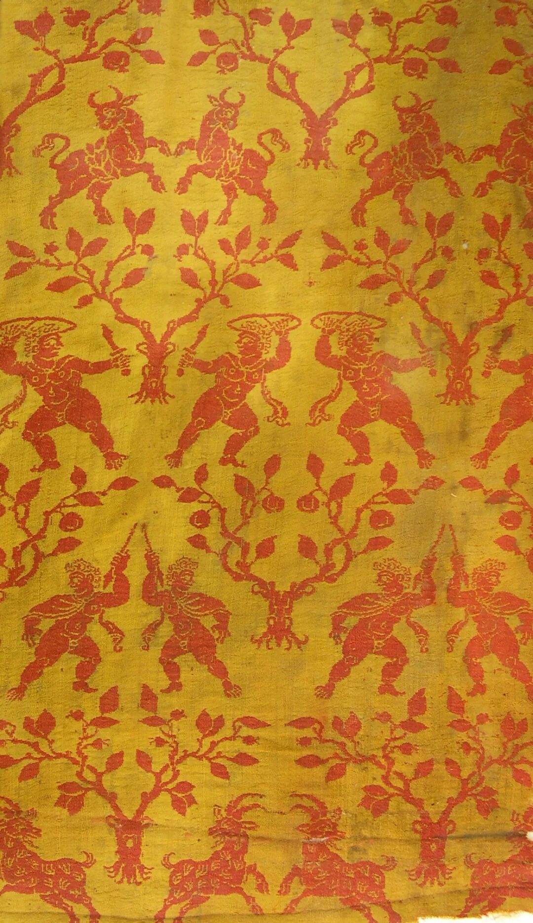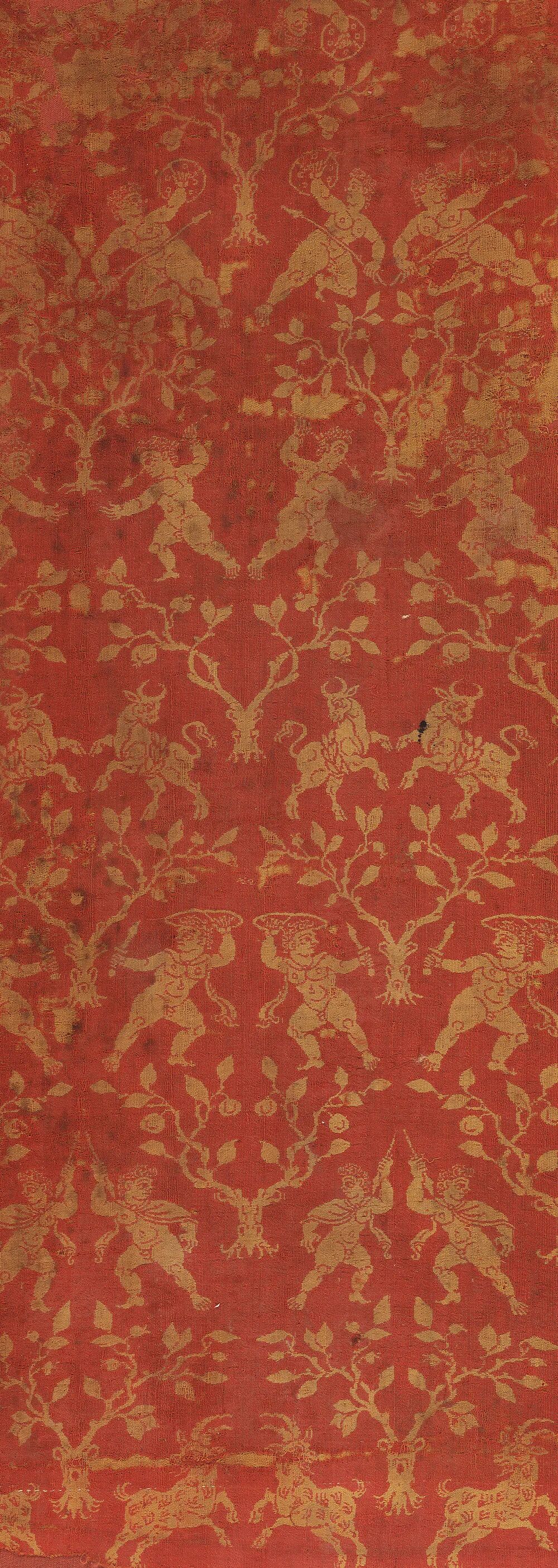 人兽树纹毛锦袍面料(背面)