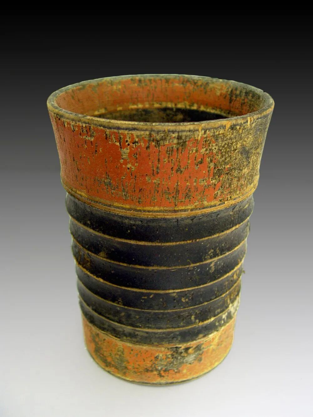 玻璃杯(左上),地产旋纹漆杯(左下),单耳木罐(右上),单耳木壶(右下)