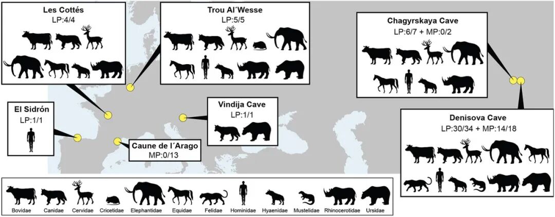 动物骨骼破碎程度较高,有明显的切割、灼烧、敲击等痕迹,可鉴定种属包括食肉类、兔类、羊、驴、犀牛、棕熊以及鸟类等大量小动物骨骼,这个四万五千年前的动物群落为探讨这一时期人类对动物资源的利用方式和遗址环境变迁提供了宝贵的资料。