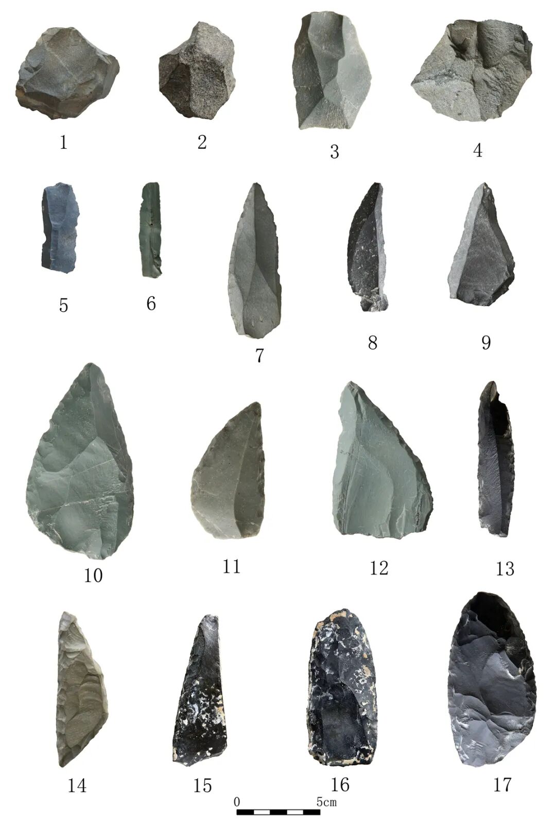 旧石器文化层中出土的遗物包括编号标本两千余件,其中石制品约占2/3,动物骨骼化石约占1/3。此外还筛选出细小的动物化石及石制品标本万余件,筛选标本中以动物化石尤其是小型动物化石为主。石制品种类十分丰富,包括勒瓦娄哇石核、盘状石核、勒瓦娄哇尖状器、各类刮削器与莫斯特尖状器等典型的勒瓦娄哇—莫斯特文化的石制品。总体显示出较明显的旧大陆西侧旧石器时代中期文化特征,在国内同时期遗址中十分独特,填补了中国缺少典型旧石器时代中期莫斯特文化类型的空白。