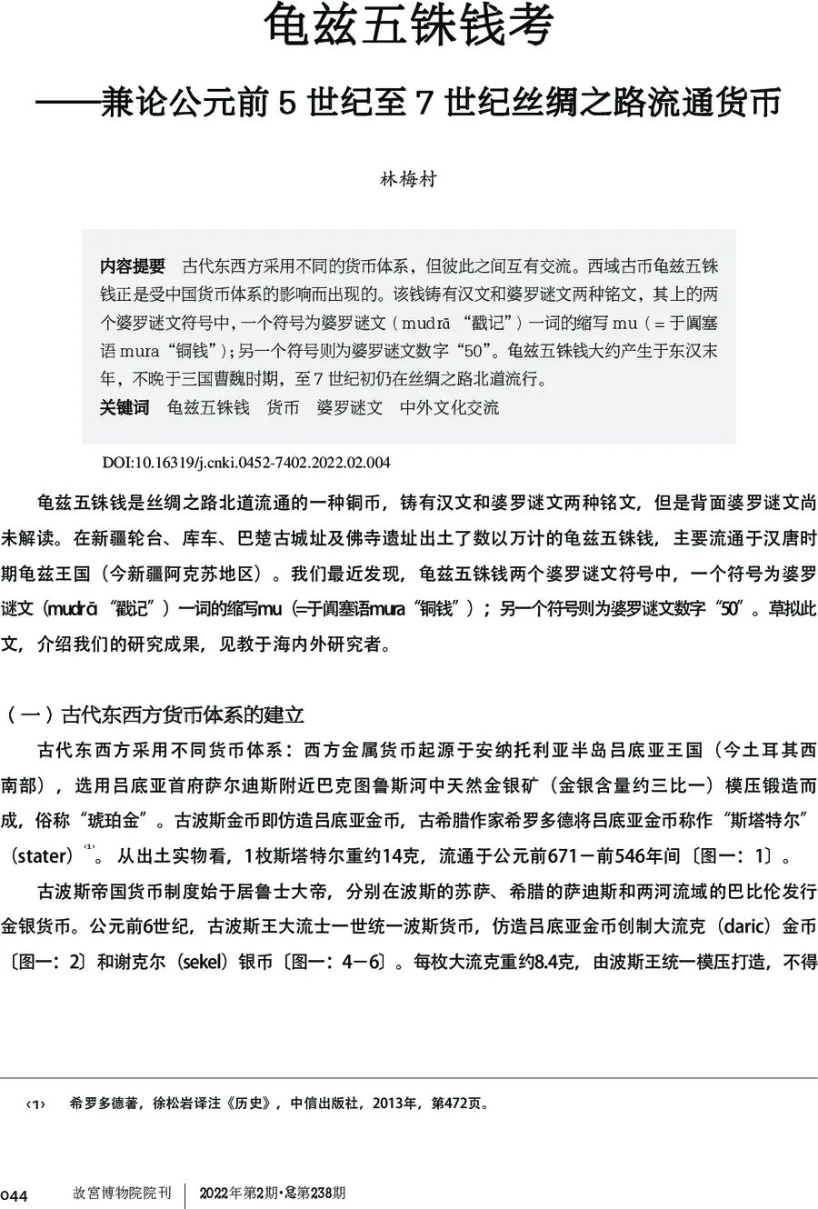林梅村:龟兹五铢钱考——兼论公元前5世纪至7世纪丝绸之路流通货币