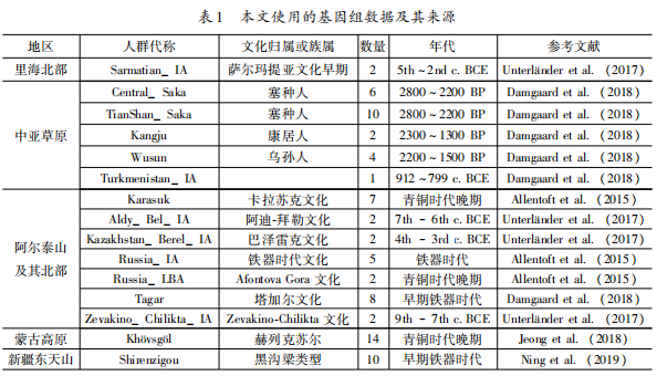 [36] 内容参见:Allentoft M E.,Sikora M.,Sjogren K-G.,et al.,“Population Genomics of Bronze Age Eurasia”,Nature,Vol.522,2015,pp.167-172.Unterlander M.,Palstra F.,Lazaridis I.,et al.,“Ancestry and Demography and Descendants of Iron Age Nomads of the Eurasian Steppe”,Nature Communications,Vol.14615,2017,pp.14615.Damgaard P B.,Marchi N.,Rasmussen S.,et al.,“137 Ancient Human Genomes from across the Eurasian steppes”,Nature,Vol.557,2018,pp.369-374.Jeong C.,Wilkin S.,Amgalantugs T.,et al.,“Bronze Age Population Dynamics and the Rise of Dairy Pastoralism on the Eastern Eurasian Steppe”,PNAS,Vol.115,2018,pp.E11248-E11255.Ning C.,Wang C-C.,Gao S.,et al.,“Ancient Genomes Reveal Yamnaya-Related Ancestry and a Potential Source of Indo-European Speakers in Iron age Tianshan”,Current Biology,Vol.29,2019,pp.2526-2532.