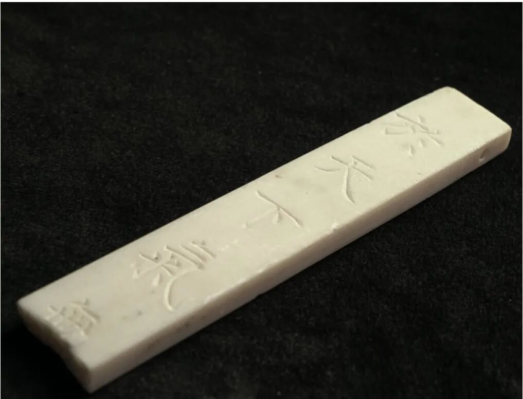 目前国内外学界多倾向于肯定6640/1-5号藏品的历史价值,但对其用途与历史性质的解读有很大不同。枡本哲一直坚持认为该藏品属于唐代经营北疆中原重臣(可能是皇室成员)的哀册残简,其观点在俄国引起广泛重视,亦颇有争议。一部分俄国学者倾向于认为这是唐朝皇帝866年在黠戛斯可汗去世时赠予的哀册,以表达其最高敬意。以刘凤翥为代表的中国学者则认为这就是唐咸通七年封册黠戛斯可汗的玉册残简。由于很长时间内,在漠北发现的唐朝玉册实物只有此一件,相关讨论颇有孤证之局限。就汉文记述来看,唐咸通七年只有“黠戛斯遣将军乙支连几入贡,奏遣鞍马迎册立使及请亥年历日”,并未出现过唐遣使黠戛斯吊祭之记述,刚好可与6640/1-5号藏品印证。况且就目前所见考古与文献资料来看,哀册仅用于皇室成员之葬仪,并未见中原皇帝赠予邻蕃首脑,所谓哀册说尚缺乏确凿证据。此外,21世纪以来蒙古—德国联合考古队在回鹘汗国首都哈喇巴拉嘎斯遗址发现了若干数量的玉册残片,在遗址东南角高台水井中的出土残片有“于天下 气无”等字样(图3、图4),可以与白居易《册回鹘可汗加号文》“声有闻于天下,气无敌于荒外”互证。这些在回鹘首都遗址新发现的玉册残片与阿巴坎6640/1-5号藏品相参照,为唐朝对漠北回鹘、黠戛斯授予册书提供了物证。目前在回鹘、黠戛斯汗国政治中心发现的汉字大理石残片应是唐朝授予回鹘、黠戛斯可汗的册书玉册残简。