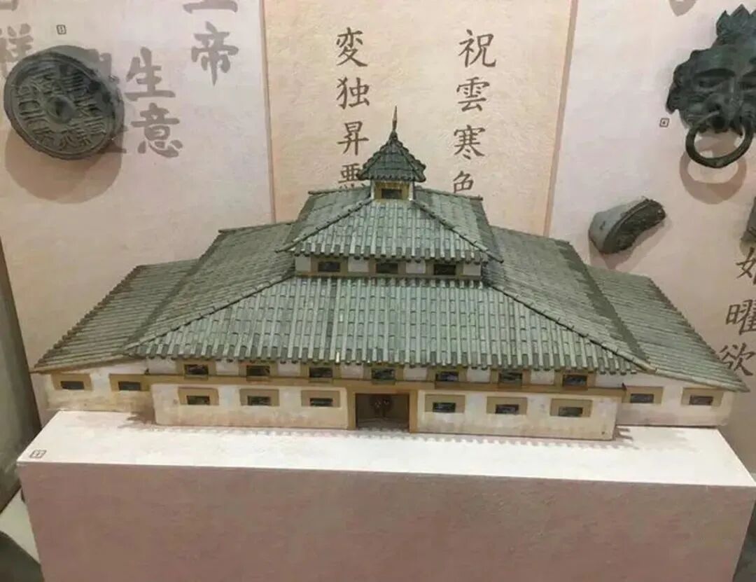 这些墙壁的下面也有带铭文的瓦当出土,据此可以推测外围房间的房顶是单面坡的瓦顶。它的上沿分别与中心房间的四壁相连。可见这座房屋可以复原为典型的中国建筑:平面正方形,上面盖有四面坡垂檐瓦顶。