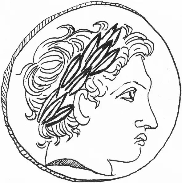 首先,腓力二世的扩张。公元前348年,腓力二世获得了奥林托斯(Olynthus)的统治权。它的陷落一方面宣告了以其为中心的恰尔基迪亚同盟(the Chalcidian League)的最终解体,另一方面也意味着整个恰尔基迪亚半岛都被阿吉德王朝收入囊中。恰尔基迪亚同盟成立于公元前432年,并于公元前379年前后统一发行希腊—小亚细亚重量标准的四德拉克马(tetradrachm)同盟银币。银币的正面是头戴橄榄枝桂冠的阿波罗侧面头像,背面是七弦里拉琴以及代表着城市联盟的铭文ΧΑΛΚΙΔΕΩΝ。[7]其次,在第三次神圣战争(Third Sacred War)期间,腓力二世以阿波罗的名义在克罗库平原战役上对抗奥诺马尔库斯(Onomarchus)。腓力二世令手下兵卒头戴象征着阿波罗的橄榄枝桂冠,营造出天神降临的氛围,有力地震摄了敌军,赢得了最终的胜利。[8]第三次神圣战争激活了马其顿的希腊身份,[9]使腓力二世成为阿波罗神的代言人,取得了近邻同盟(Amphictyonic League)的实际控制权,进而更深入地染指希腊城邦的事务。战争结束以后,腓力二世还以主持人的身份出席了向阿波罗献祭的皮提亚赛会(Pythian Games)。[10]总而言之,腓力利用阿波罗神,对内增强新征服地区对王国统治的认同感,对外树立马其顿人的希腊身份,使腓力斯塔德成为腓力二世最具代表性的钱币之一。作为马其顿雇佣军的军饷,腓力斯塔德被外籍士兵们带到阿吉德王朝以外的地区。[11]钱币成为有效的对外宣传媒介,强化了阿吉德王朝与阿波罗神的关系。