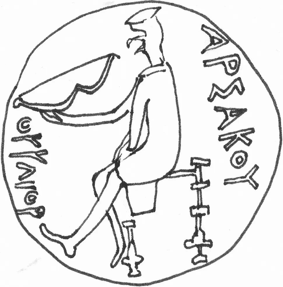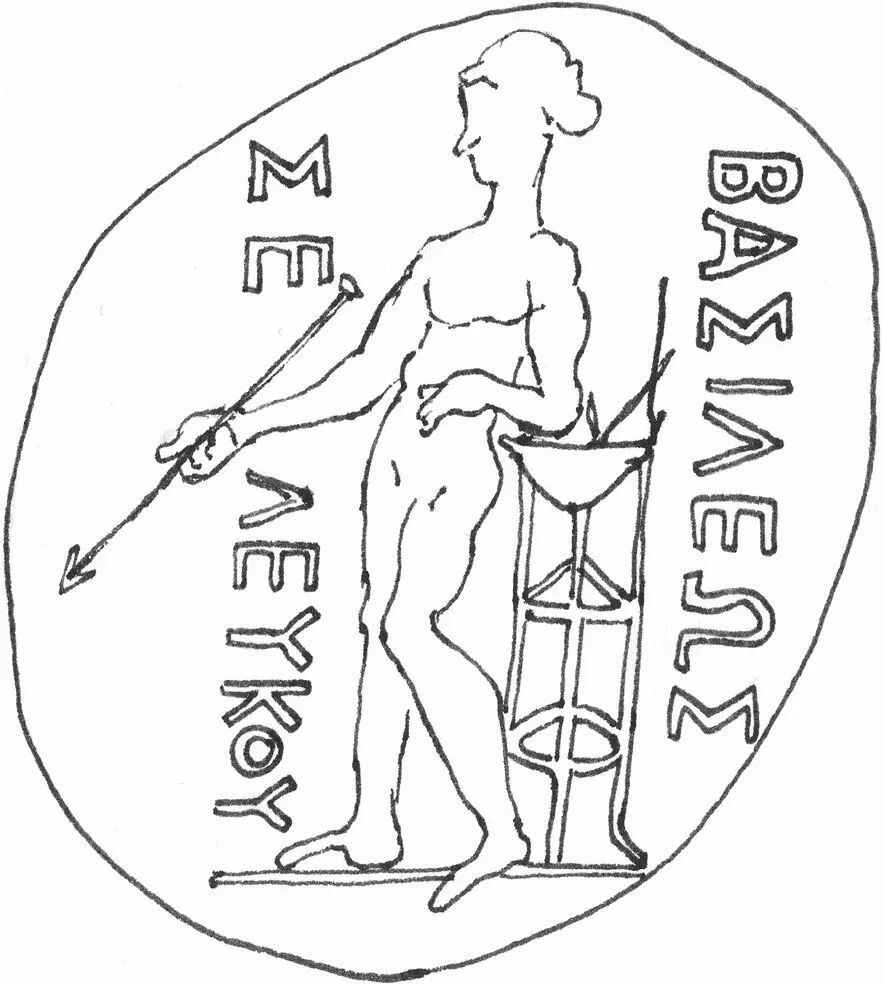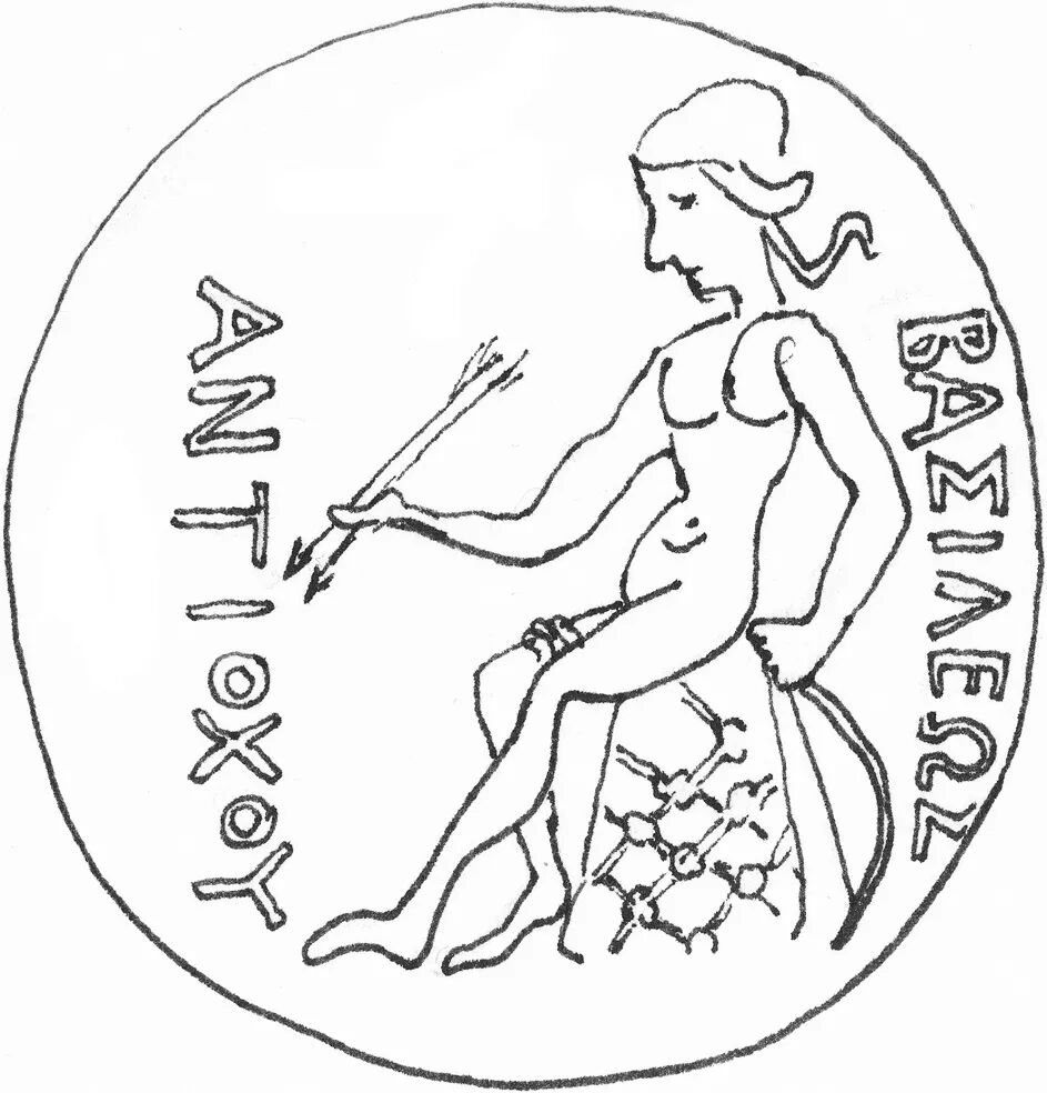 [29]在塞琉古之前,并没有其他记载提到锚是阿波罗的象征物。因此学者们纷纷质疑锚的最初来源和原始含义,认为阿波罗与锚的关系可能是在塞琉古王朝构建家族神话时人为建立起来的。主要观点如下:1.锚与阿波罗崇拜可能并无直接的联系。塞琉古王朝最初可能是受到黑海西岸的城市钱币的启发,将阿波罗与锚联系起来。2.塞琉古之所以要发行印有锚的钱币,很可能因为锚代表他曾在托勒密军中担任海军将领一职。参见Krzysztof Nawotka,“Apollo,the Tutelary God of the Seleucids,and Demodamas of Miletus”,in Zosia Archibald and Jan Haywood,eds.,The Power of Individual and Community in Ancient Athens and Beyond,Essays in Honour of John K.Davies,Swansea:Classical Press of Wales,2019,p.261-284;Evgeni Paunov,“The Tetradrachm Coinage of Apollonia Pontica:Iconography,Issues and Magistrates”,in Dilyana Boteva,ed.,Studies in Ancient Unmismatics in Honour of Dimitar Draganov,Sofia:Bobokov Bros Foundation,2017,pp.59-88.