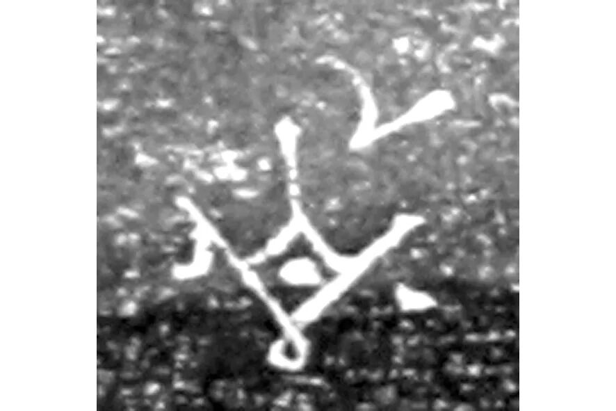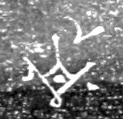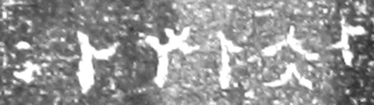 墓志最后的氏族标记与西乃乌苏碑(又称“磨延啜碑”)上的氏族标记相近。西乃乌苏碑为芬兰学者兰司铁在今蒙古国北部色楞格河及西乃乌苏湖附近发现。碑约建于759年,共存突厥文50行,内容主要记述回鹘第二代可汗药罗葛磨延啜(也称英武威远毗伽可汗或葛勒可汗,747~759年)的生平事迹。这也进一步印证了墓主葛啜王子出身于药罗葛回鹘可汗氏族。请看该墓志最后面的氏族标记与西乃乌苏碑上的氏族标记的对照: