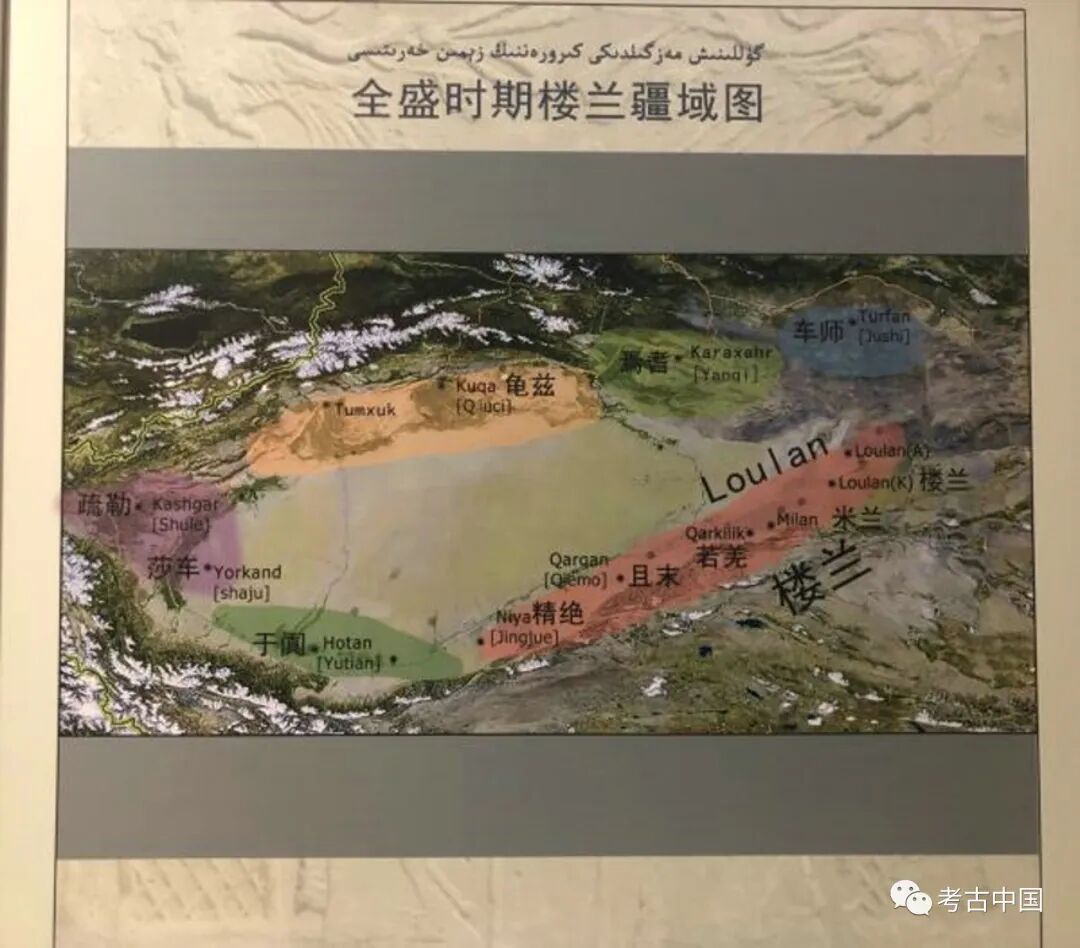 从过去西域三十六国的疆域图中,可以发现楼兰在全盛时期的势力范围非常广,基本覆盖了塔里木盆地东部的地盘,是名副其实的西域强国。