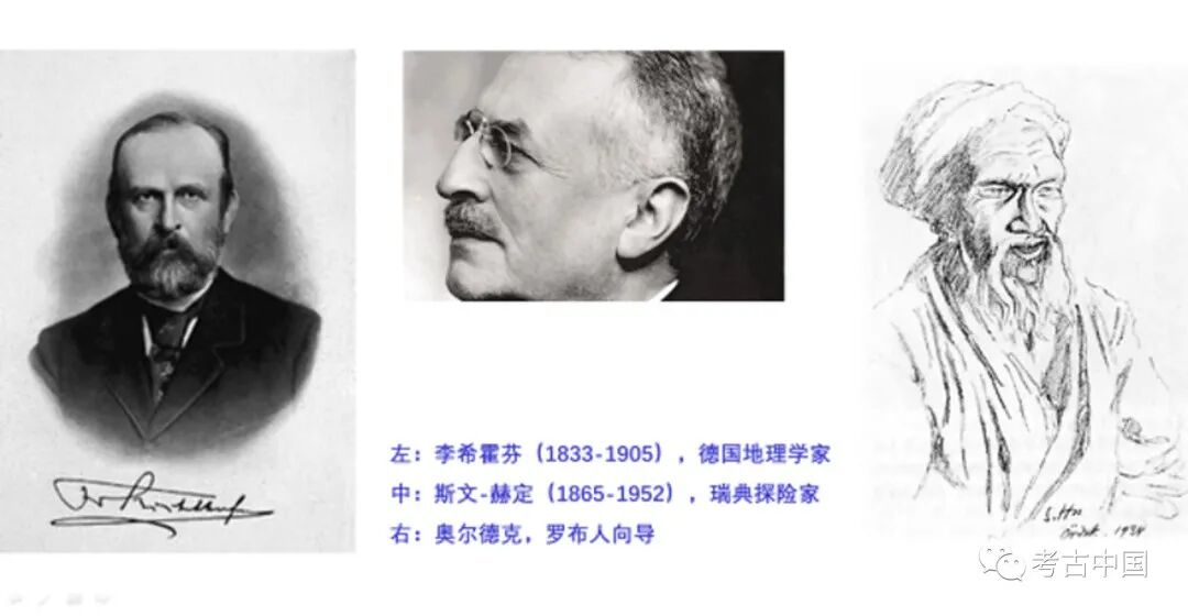 ▲ 李希霍芬(左)、斯文·赫定(中)、奥尔德克(右)