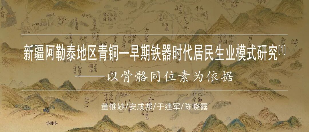 [1]本文是国家自然科学基金“新疆东天山地区青铜—铁器时代居民同位素食谱重建及生业模式”(项目编号:41701215)、国家社会科学重大项目“欧亚视野下的早期中国文明化进程研究”(项目编号:18ZDA172)和中华文明探源研究(2019~2022)“中华文明起源进程中的生业资源与技术研究”(项目编号:2020YFC1521606)的阶段性成果。