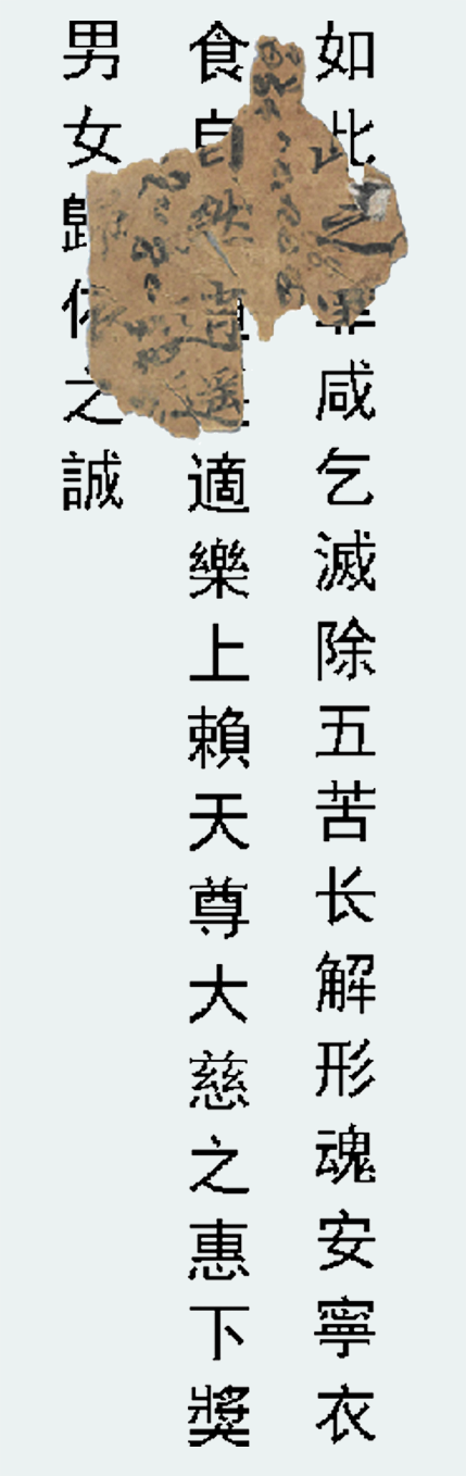 这两号残片缀合后行款与P.2868号一致,两卷当为同源。《天尊说随愿往生罪福报对次说预修科文妙经》是道教借用佛教预修生七斋仪式造作的经典。[11]预修仪式在后世受到正统道士的批判,如金允中《上清灵宝大法序》即批判王升卿《灵宝大法》“及有预修之斋,颇无经据”。[12]所以《正统道藏》中保存的与预修仪式相关的文献很少,仅有《太上慈悲九幽拔罪忏》《灵宝领教济度金书》等少数几种。这可能也是《天尊说随愿往生罪福报对次说预修科文妙经》亡佚的原因。敦煌文献中存此经四件,吐鲁番文献中也有此经发现,这似说明该经在唐代前期流传较广,道教的预修斋应是当时普遍施行的一种仪式。