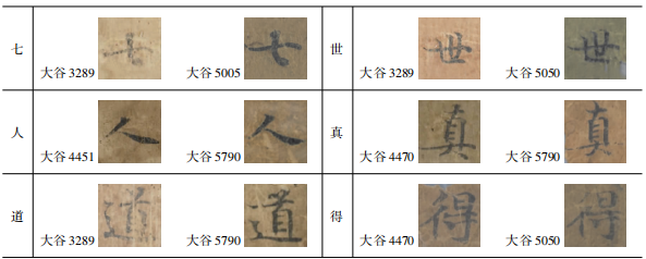 表一 大谷文书几件《太上洞玄灵宝真文度人本行妙经》及卷背残片笔迹对比