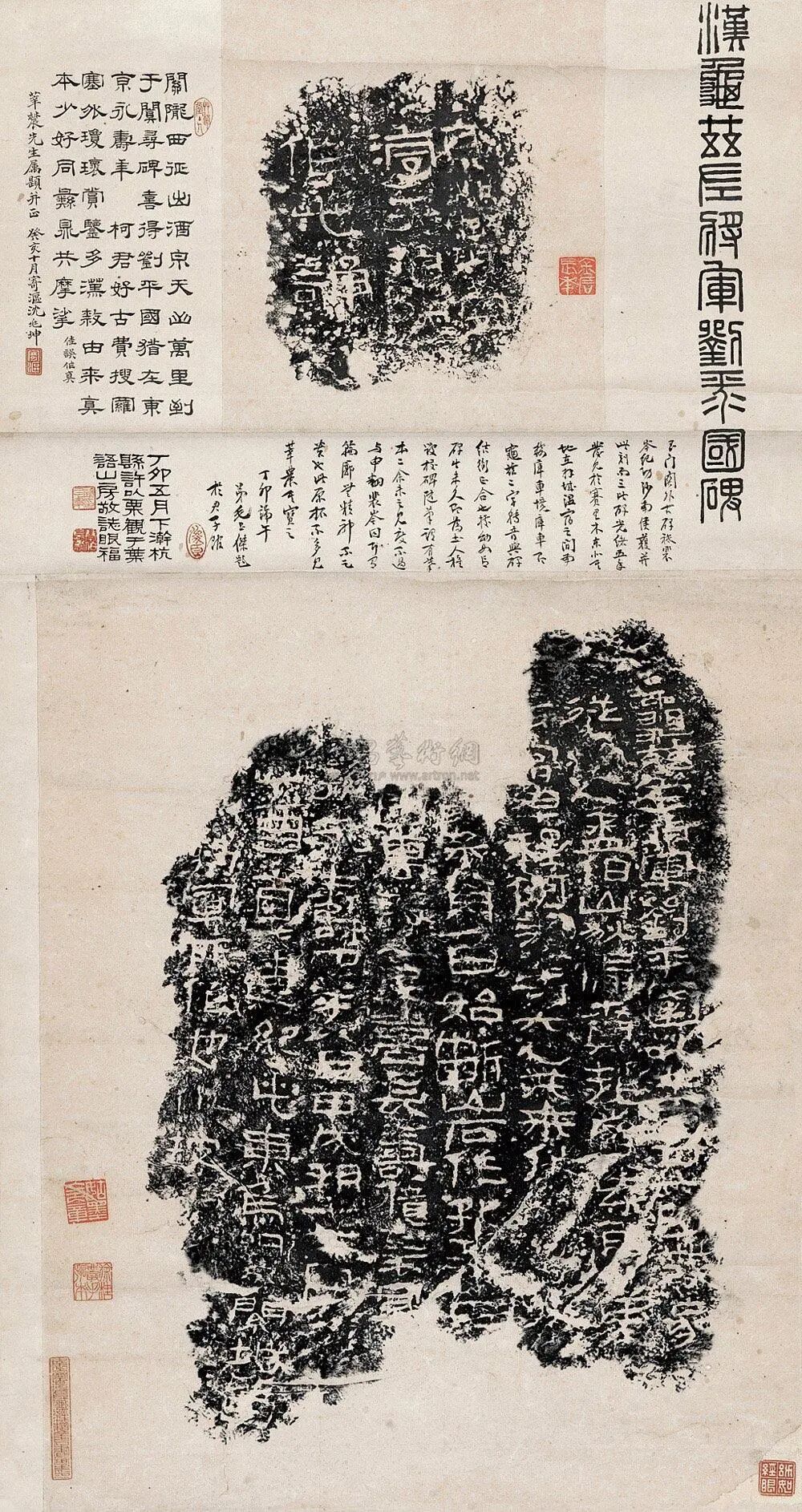 最新的《刘平国碑》拓片则见于2021年1月的微拍堂,其拓片上钤有“徐桂丛手拓本”、“徐鼎藩印”、“姑墨令章”、“徐鑫龄”、“邵年”等印,后二印则是当代长沙鉴藏家徐鑫龄先生的印章,此拓或也是来自徐氏家族的传世收藏品。