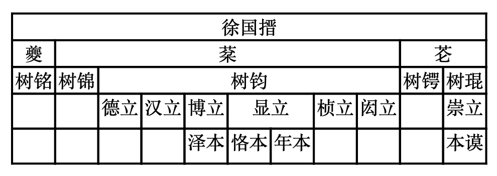 以上仅就徐国搢名下一支而言。道光七年(1827)长沙徐氏三修族谱,审定从第十八世起的新派语十六字:“树立本经,敬宗克孝,才达名儒,庆延华诰。”因此,在宗亲家族中,“立”字辈的文化名人尚有现代教育家徐特立(1877—1968)等。