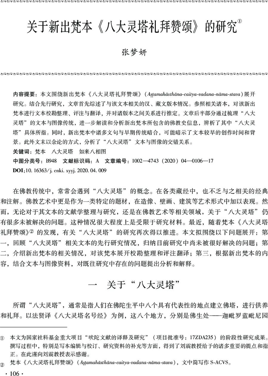 关于新出梵本《八大灵塔礼拜赞颂》的研究[1]