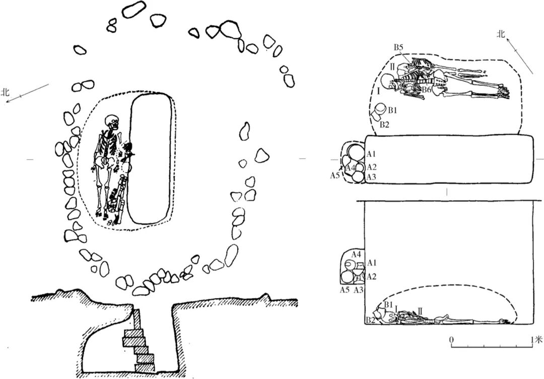 图4 偏室墓墓葬形制及葬式对比[左图为察吾乎三号墓地(公元前200~公元270年)M4平剖面图,右图为甘肃临潭磨沟墓地(公元前1640~前1200年)M164 平剖面图][20]