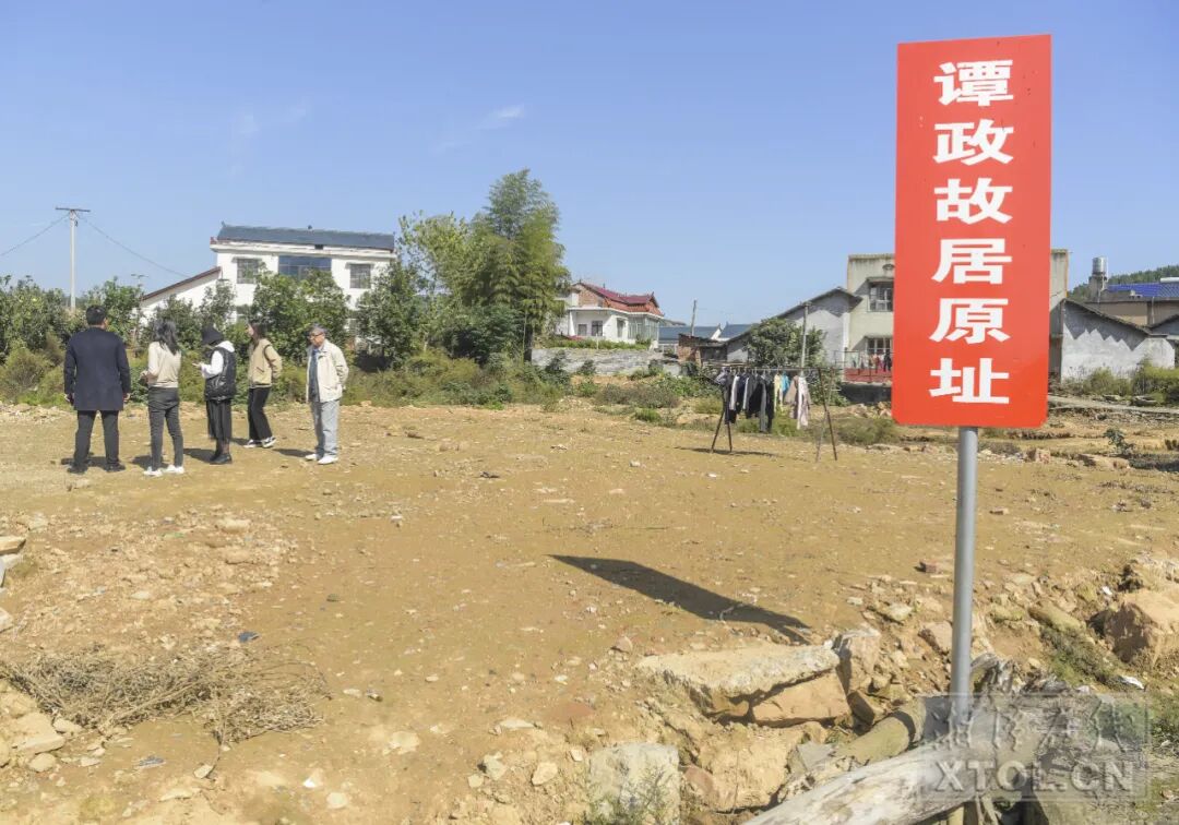 谭政故居处现在立着遗址标示牌,周边民宅的居民晒制着红薯粉、红薯干。“以前的谭家很大,在我的印象中,谭政的弟媳曾在家里改造过房子,大概是上世纪60年代,房子就被拆掉了。”住在旁边的村民周大妈还存留着些许相关记忆。