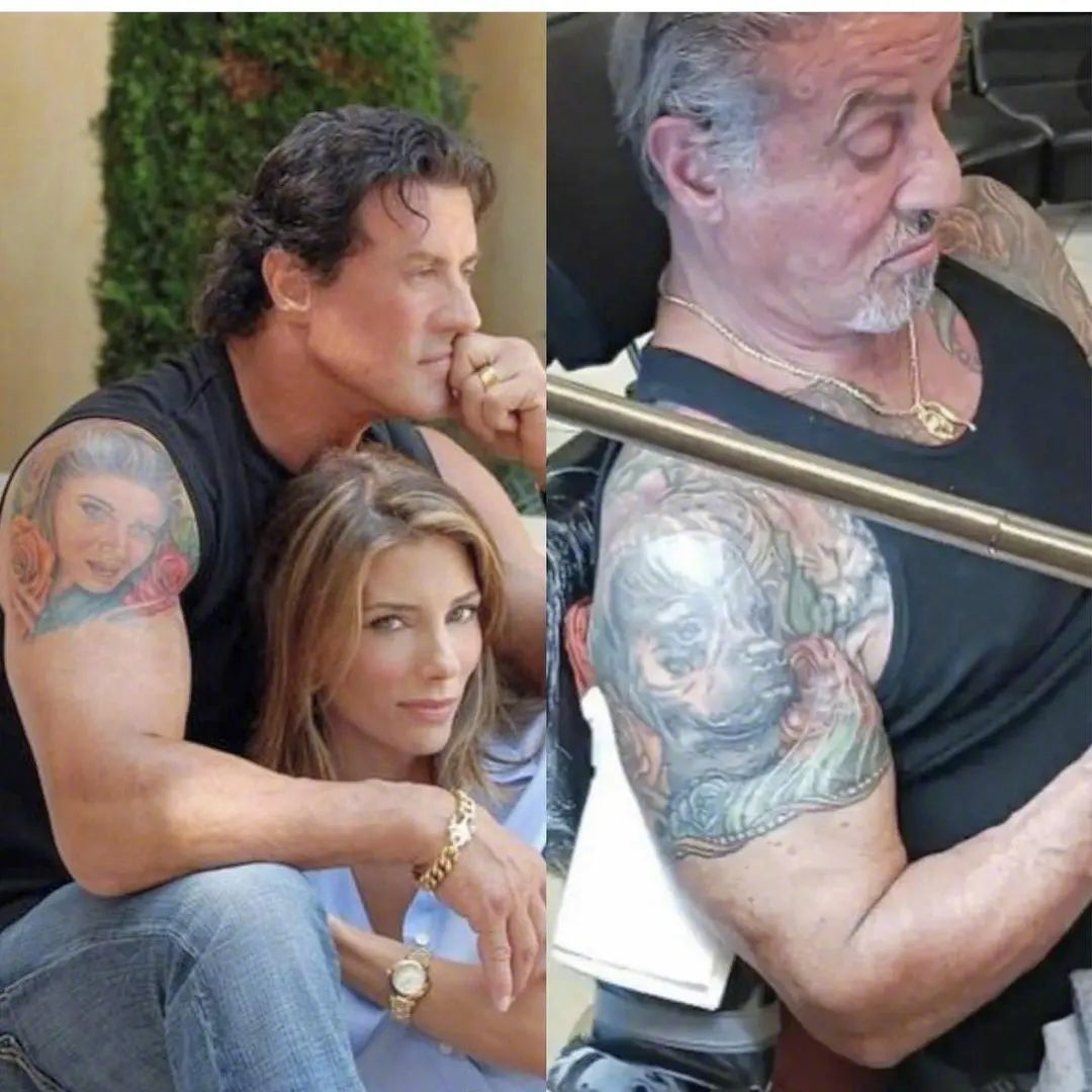 随后,史泰龙就被人发现他把自己胳膊上纹了14年的前妻头像用一个狗头给盖上了……