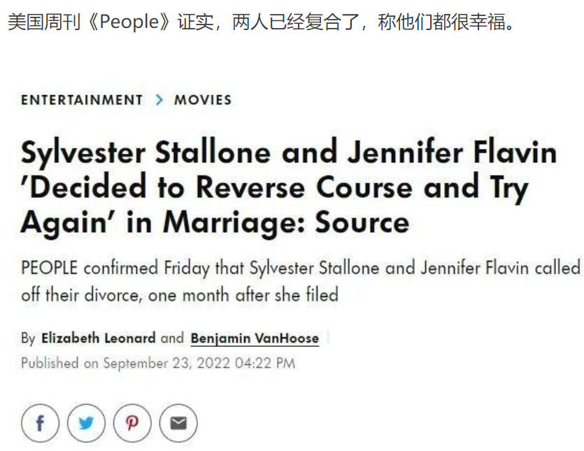 据外媒报导起因是史泰龙想养只罗威纳犬,但是Flavin不同意,于是两个人就吵了一架,吵着吵着就吵到了别的问题,女方索性提出离婚申请。