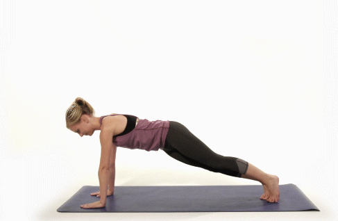 3、收紧核心,想象自己在一个平面内,不要歪斜,同时用髋部上顶,尽量远离地面;