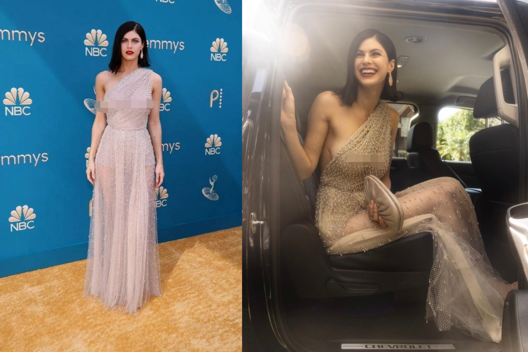 其中达达里奥更是凭借一件上下真空的长款薄纱群,成功在众女星中脱颖而出