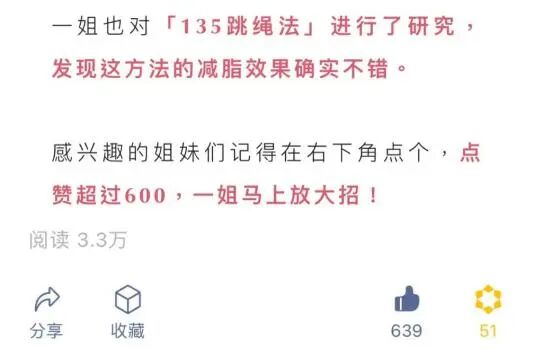 不过既然说到了关于保持身材的方法,最近一姐也发现有不少主流媒体都在推荐「135跳绳法」。
