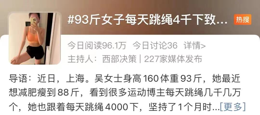 当然一姐觉得这主要和最近跳绳受伤的案例屡上热搜有关。