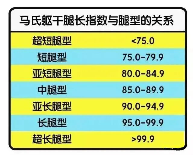 记得很久之前一姐有讲过,评判腿骨长度的标准是马氏躯干指数。