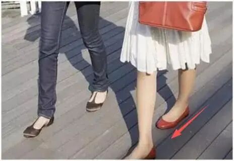 这种走姿把更多的压力积聚在了脚外侧增加关节压力,长久下来就会导致腿部骨骼变形和疼痛。