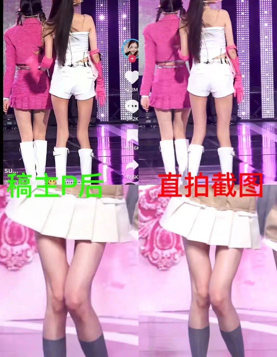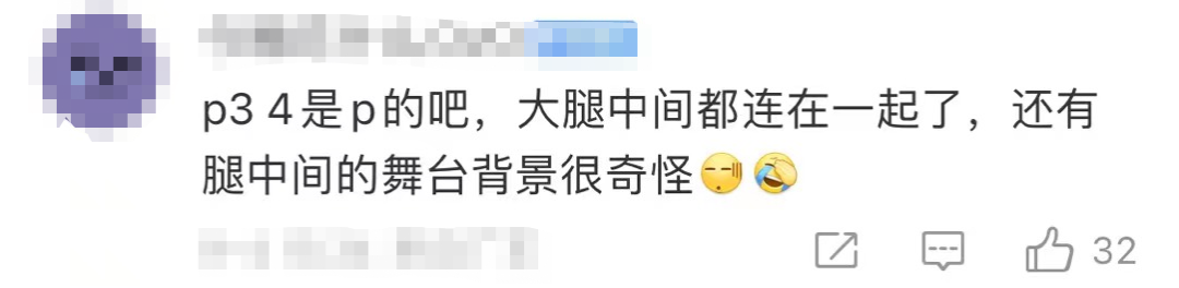 「大腿中间都连在一起了,还有腿中间的舞台背景很奇怪」