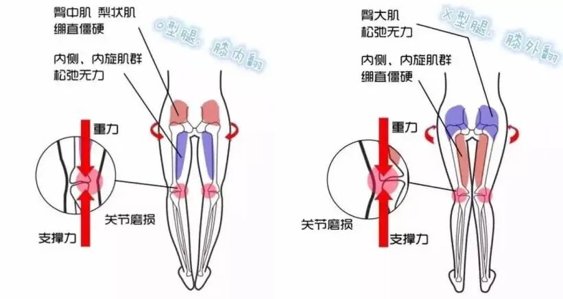 而X腿则是大腿内侧肌肉过紧,大腿外侧肌肉也很薄弱