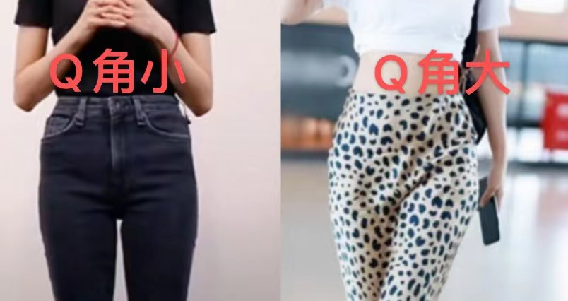 一般天生Q角大则骨盆偏宽,所以显梨形,而Q角小则骨盆偏窄,腿更容易细直。