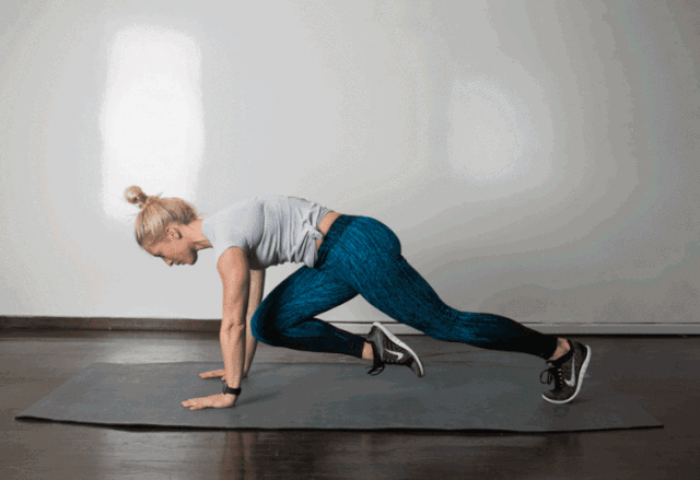 2、单腿膝盖抬起靠近胸部,速度不需要太快;