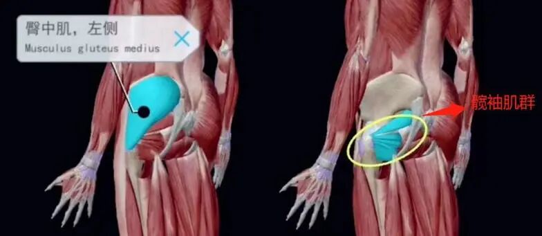 此时如果不屈髋训练到的并不是你的臀中肌,而是下图中的髋袖肌群