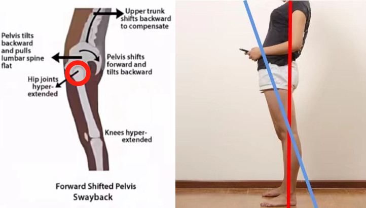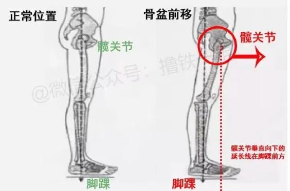久而久之,我们的大腿骨就会带着髋关节逐渐前移。