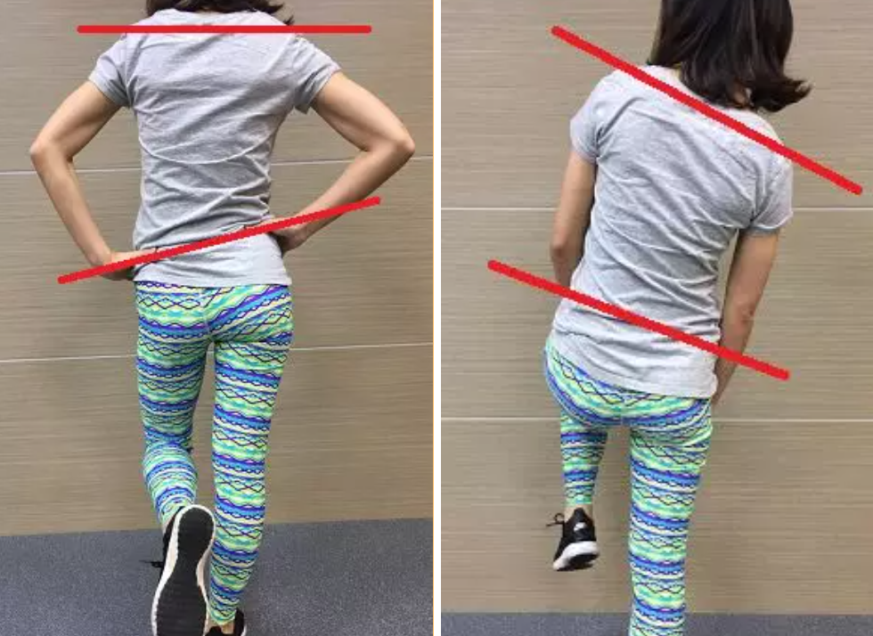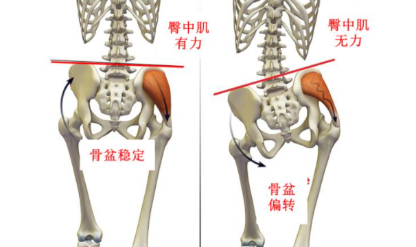 👉如果肩膀或骨盆歪斜的很严重,或者大腿明显内旋,说明臀中肌较薄弱。