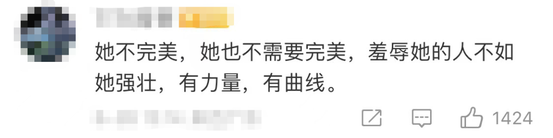 不少网友表示,「她不完美,她也不需要完美,羞辱她的人不如她强壮,有力量,有曲线」