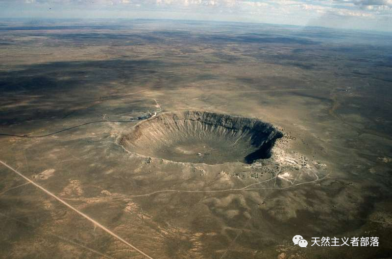 亚利桑那州的陨石坑。这个陨石坑是一颗 50m 流星撞击的结果,而当前工作中描述的撞击可能要大数百倍。图片来源:AZGS 的 Dale Nations 博士。