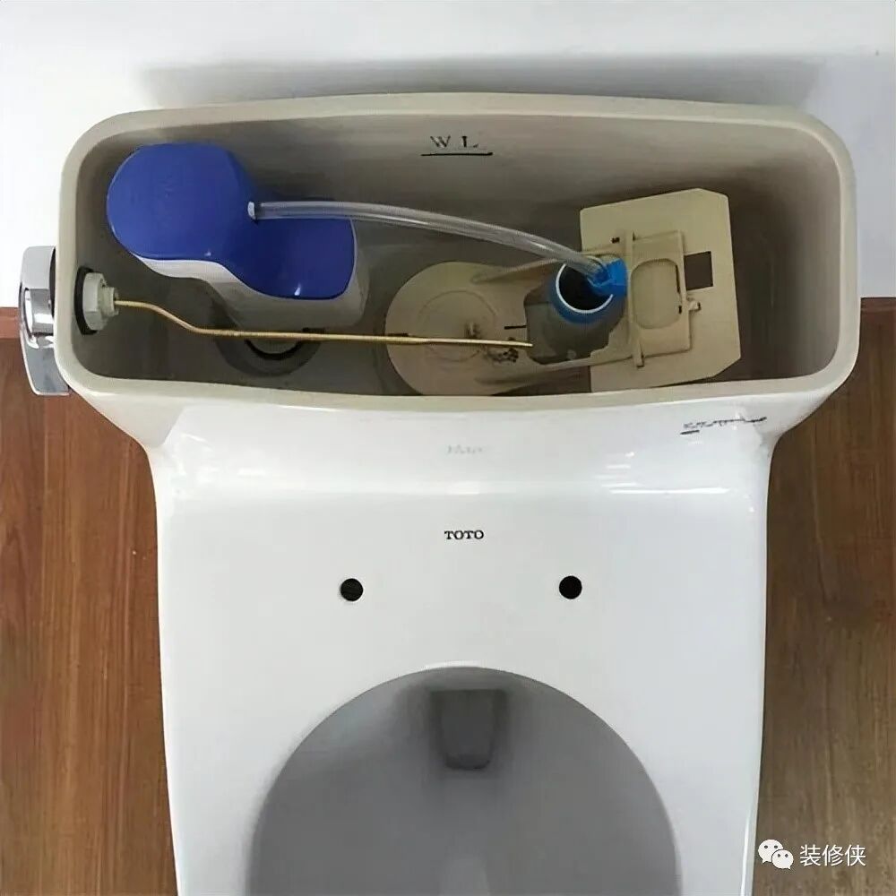 我们打开马桶的后盖就会看到一个小水漂,水漂的位置往下调,则水位下降,往上调则水位上升,通过调节这个水漂位置,我们也可以来调整马桶的水力。