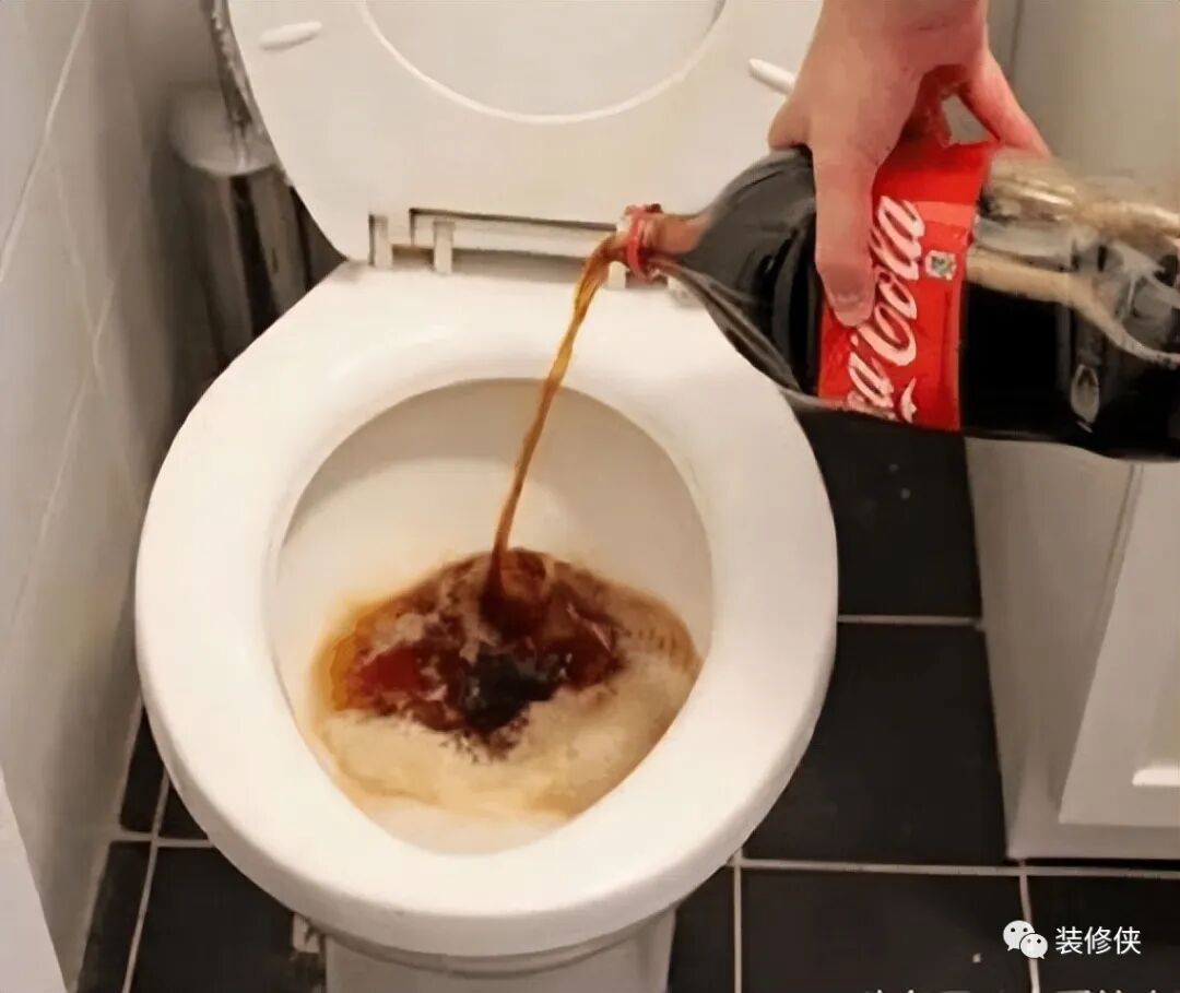 像我们平时喝的可乐等碳酸饮料都能够溶解管道污垢当中的一些碱元素,我们只需要把家里剩下的饮料倒在马桶里面,静置一晚上就能够使马桶管道的污垢脱落了,能够达到一定的清洁效果。