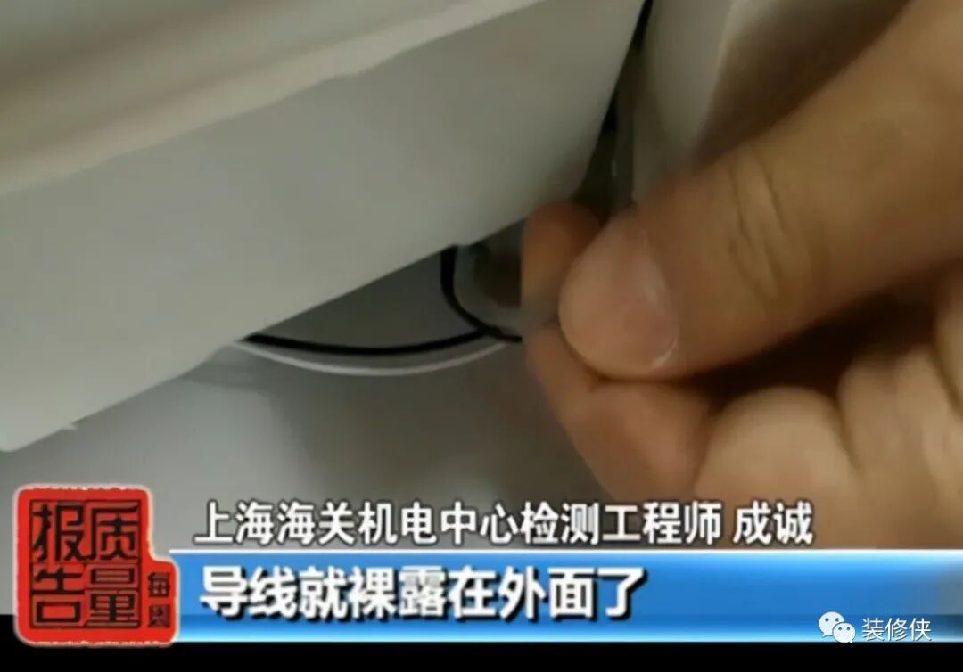 另外智能马桶的带电导线外漏也会带来触电的危险,虽然外漏的电线不会直接导致我们触电,但我们在使用冲洗功能的时候,接触到可以导电的水就很容易发生危险了。