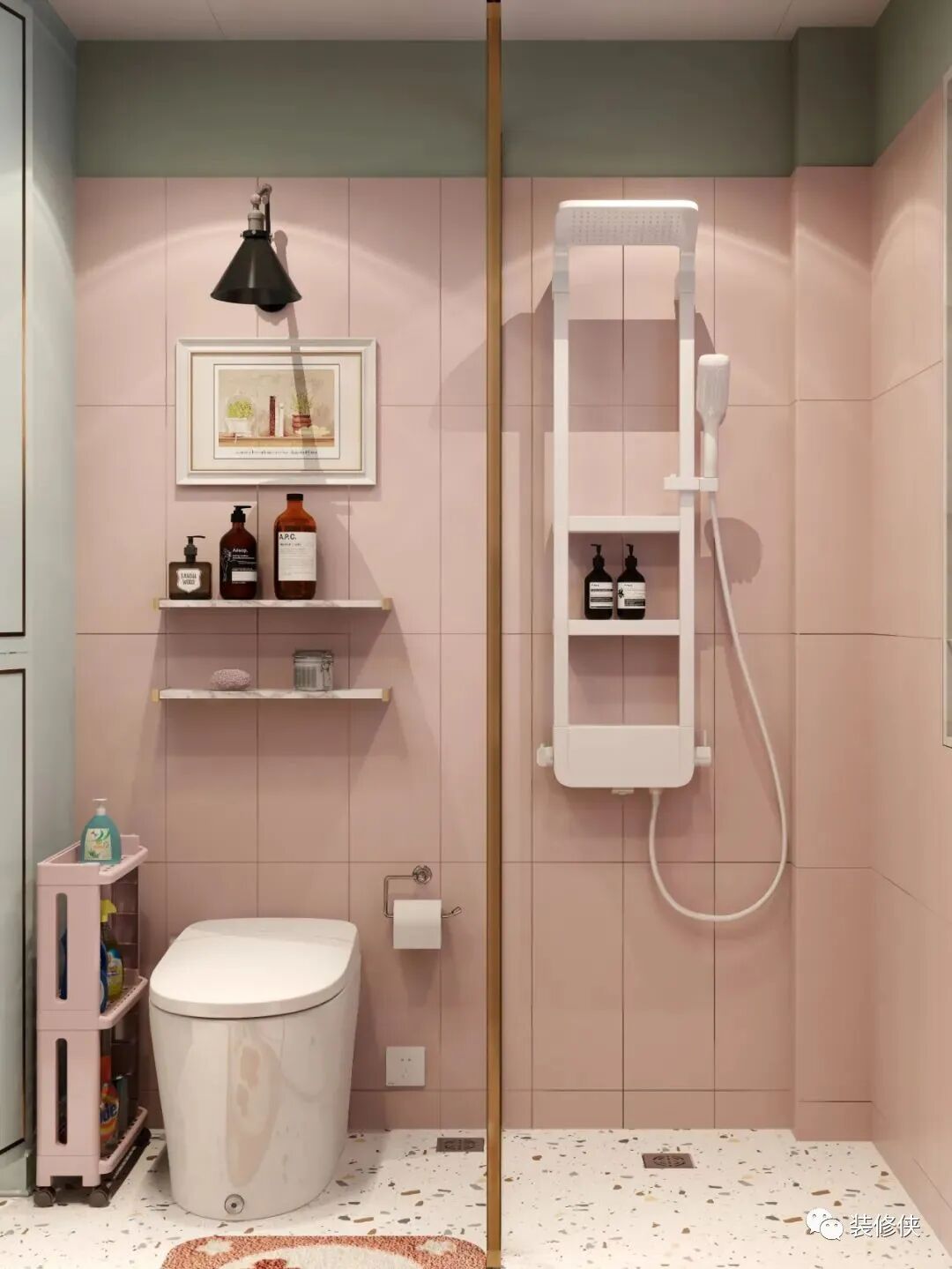 大家可以选择在淋浴区和马桶之间设计隔断的方式,也可以选择将马桶设计在距离淋浴区稍微远一点的地方,避免洗澡的时候将水淋到马桶上。