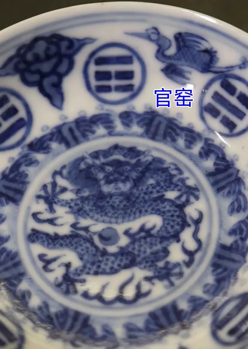 官窑的龙纹画工更生动形象,青花发色更沉一点。
