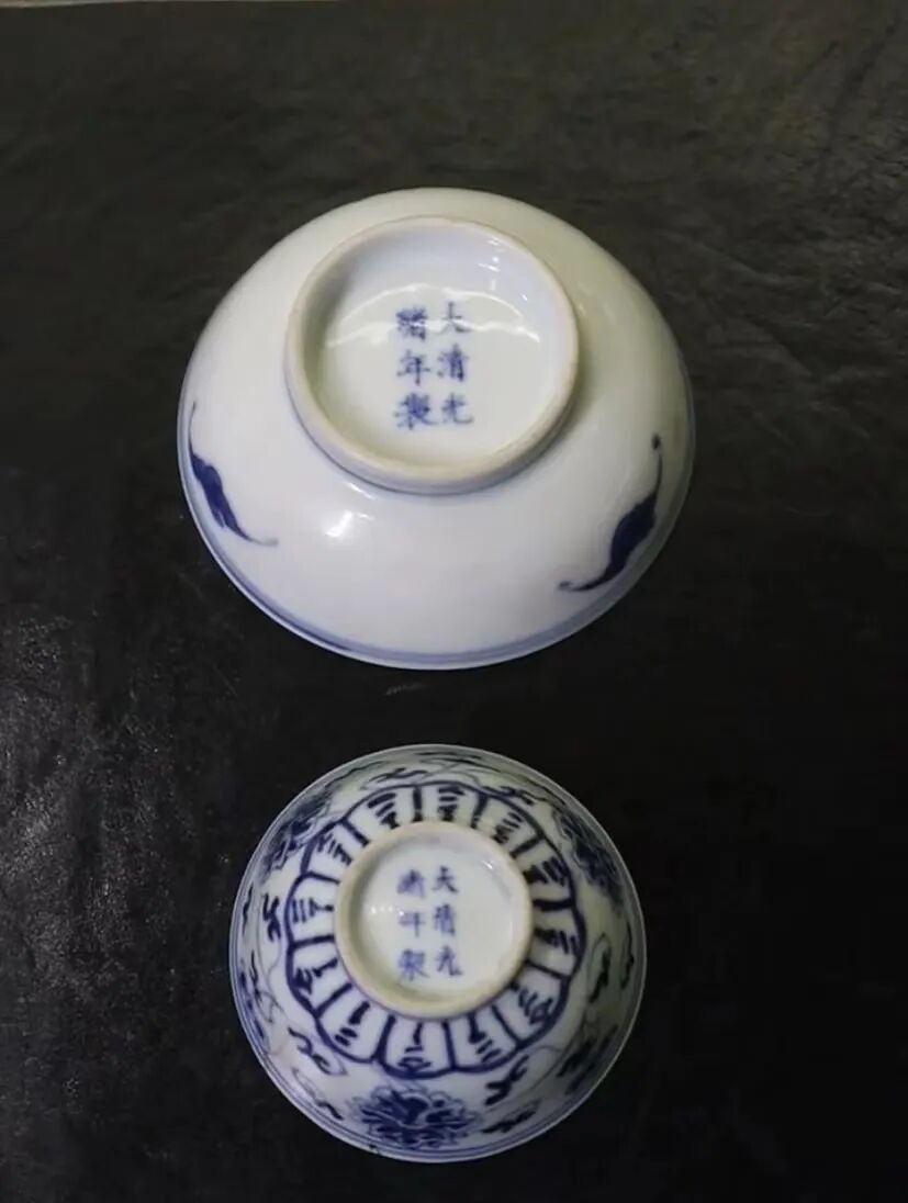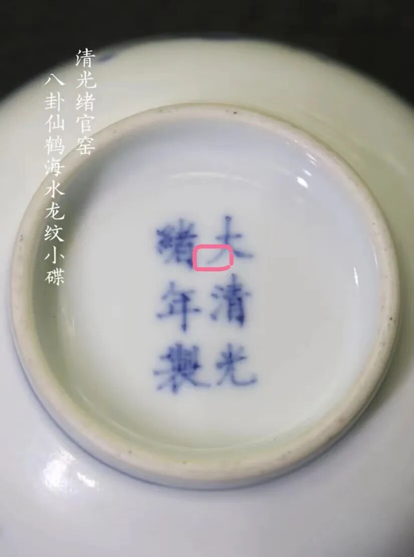我们对比两者款识中的"大"字,“大”字的一撇,官窑瓷器写的很流畅舒展,有力度,也更加工整;民窑的“大”字一撇写的很短,没有力度。民窑瓷器款识的其他字也是一样的特点,力度工整度跟官窑瓷器是完全没有办法比的,这就是通过款识,鉴别光绪的官窑跟民窑。